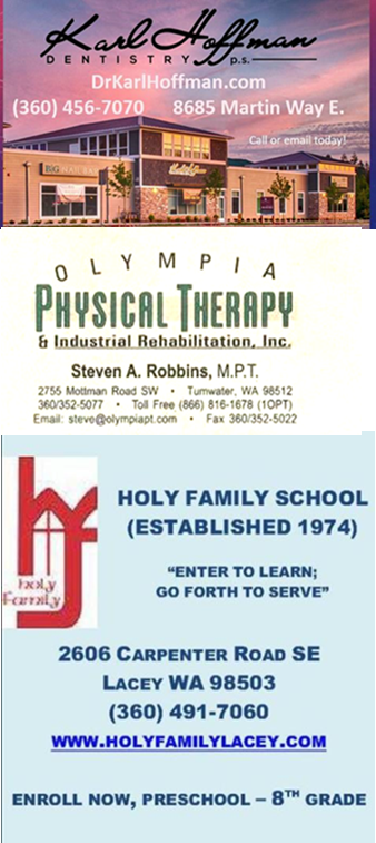 Please Support Our Sponsors Brother Knights: Fr Jim Lee has requested that the Knights of Columbus pray for religious vocations in St Joseph's Adoration Chapel (at St Mike's Church downtown) during the Saturday and Sunday morning hours of 1AM, 2AM, or 3AM. Please call Mona Bishop at St Mike’s office (360) 292-7141 or email mbishop@saintmichaelparish.org to schedule a time. If you are unable to come in person, please consider praying at home. Please Support Our Sponsors